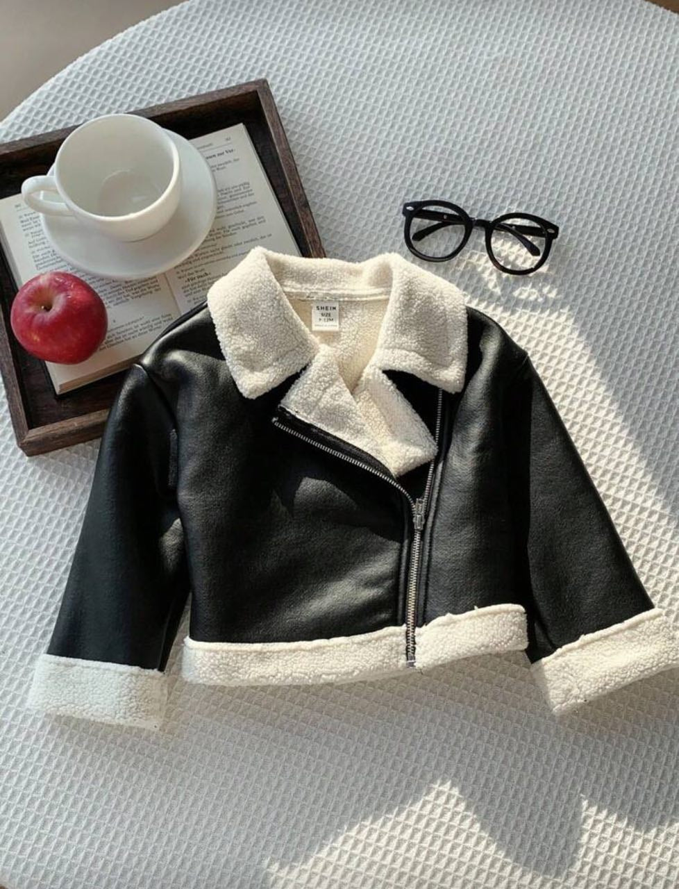 جاكيت شتوي مميز بخامة جلد صناعي ناعمة من الخارج وبطانة فرو شيربا سميكة من الداخل لتدفئ عالية دون ثقل
