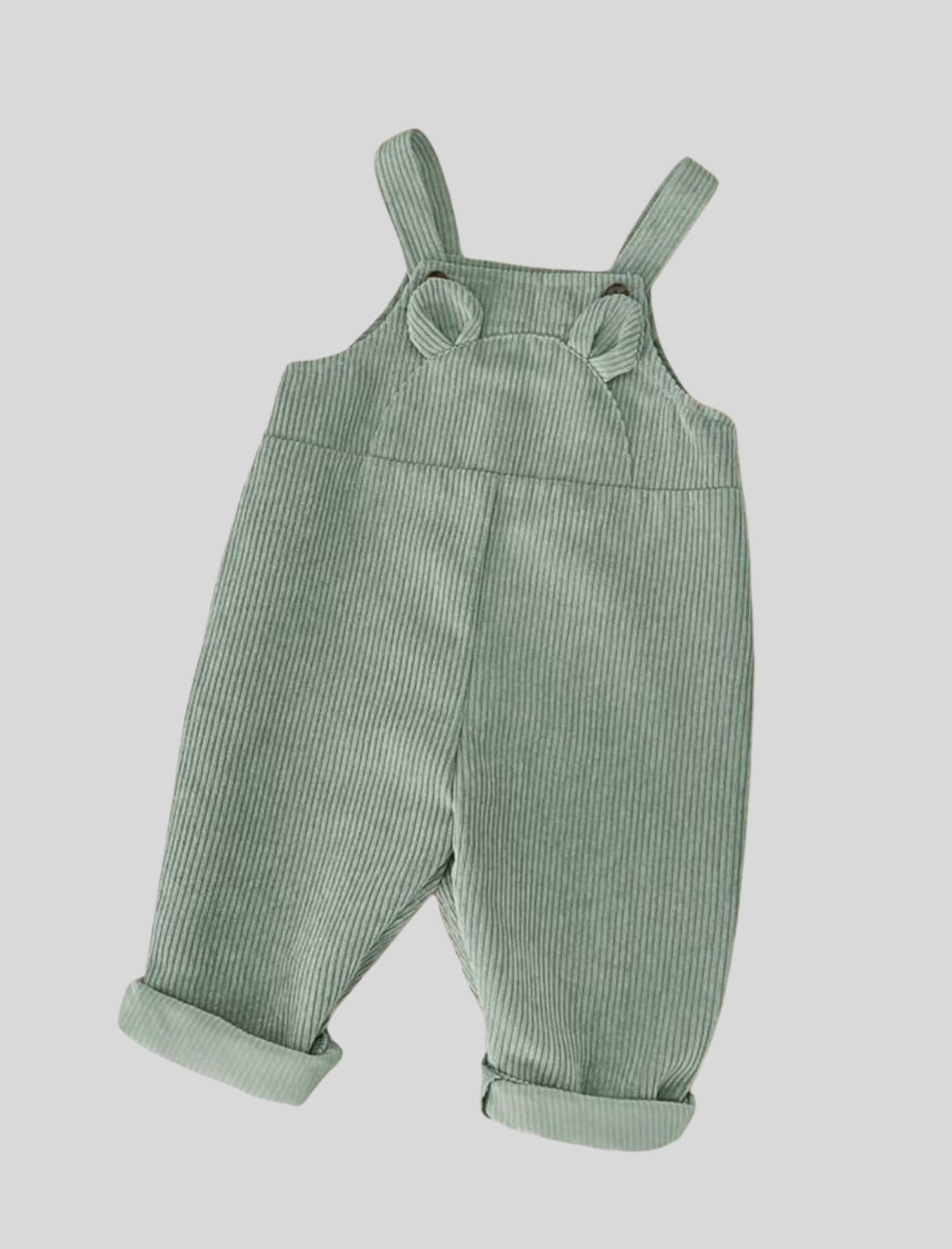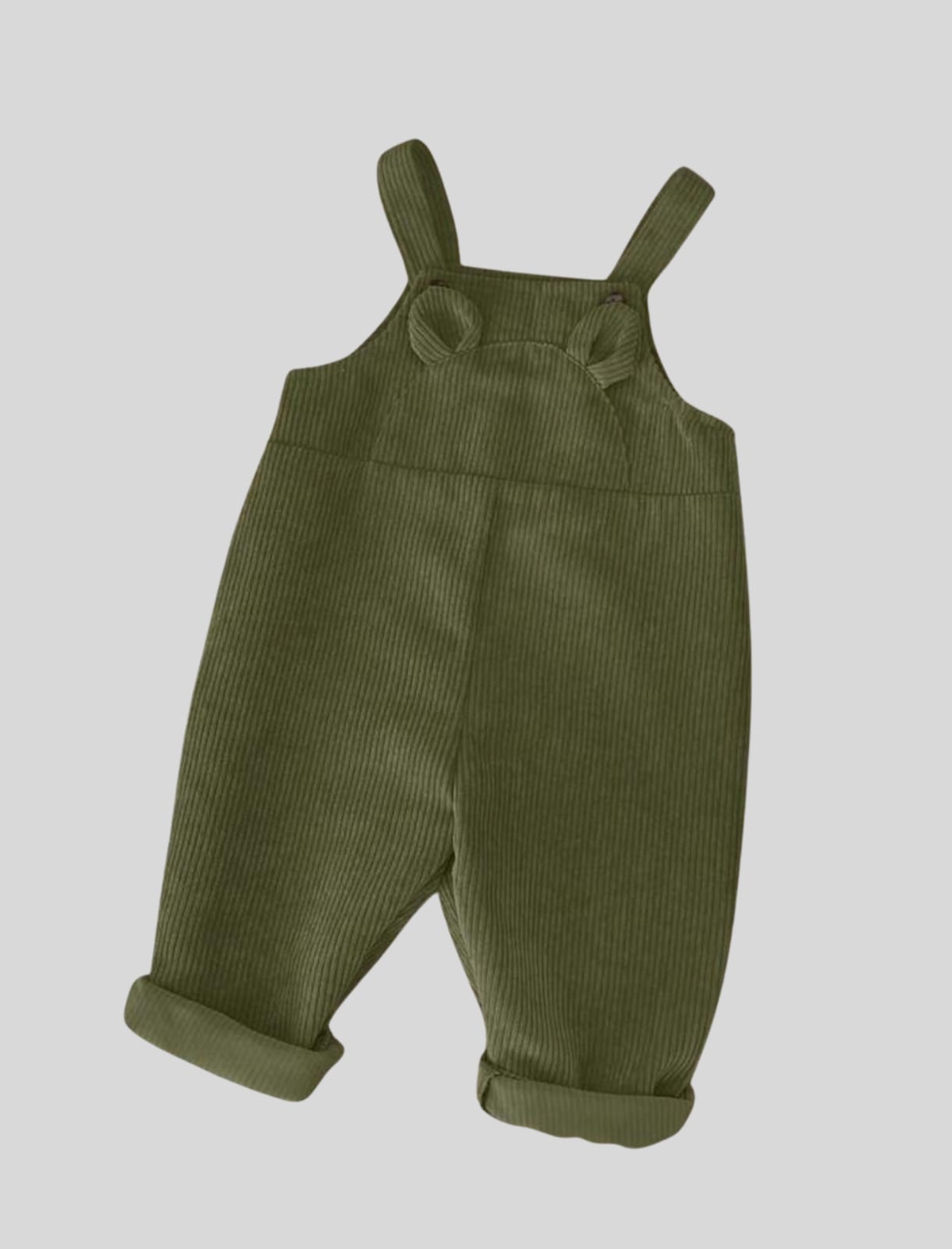 يتميز بتصميم بفتحة على الكتف بأزرار لتسهيل اللبس والتغيير، مع تفاصيل صغيرة على الصدر بشكل أذنين تضيف لمسة ظريفة