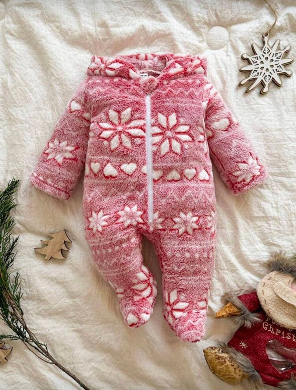 سالوبيت مواليد دافئ بملمس فرو سوفت ،لطيف على بشرة البيبي، بتصميم عملي قطعة واحدة يقلّل الطبقات سوستة أمامي يصل حتى القدمين لخلع ولبس سريع بدون معاناة، مع كابيشو مبطّن وأقدام مغطّاة تمنع دخول الهواء البارد. الأنسب للمشاوير السريعة والليالي الباردة، وشكله البينك المزخرف بقلوب وثلوج يدي إطلالة لطيفة في الصور