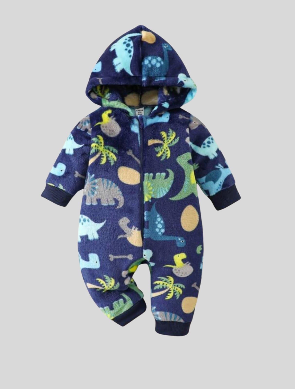 سلوبت شتوي مريح ودافئ للأولاد بخامة فرو ناعمة من الداخل والتصميم الخارجي عليه رسومات ديناصورات مرحة تضيف لمسة لطيفة ومحبوبة للأطفال