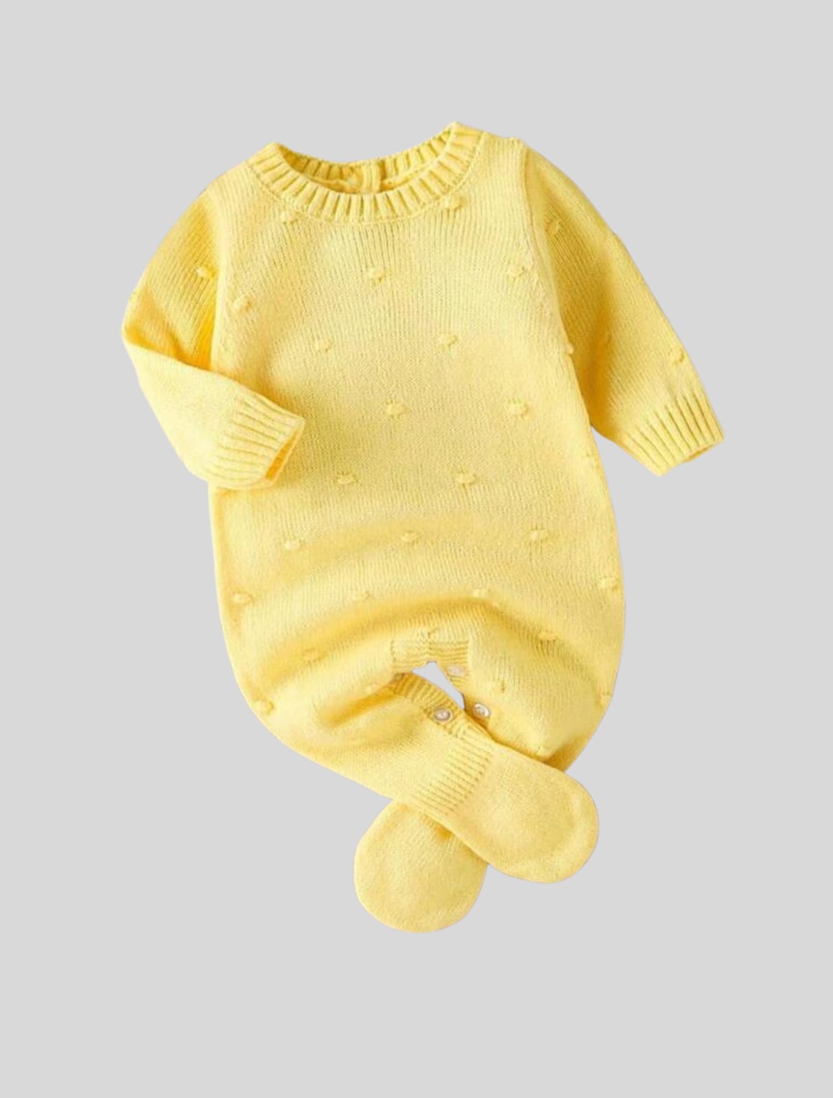 سلوبت تريكو بناتي أنيق باللون الأصفر المشرق، تصميم دافئ ومريح بخيوط ناعمة تحافظ على دفء البيبي في الأيام الباردة