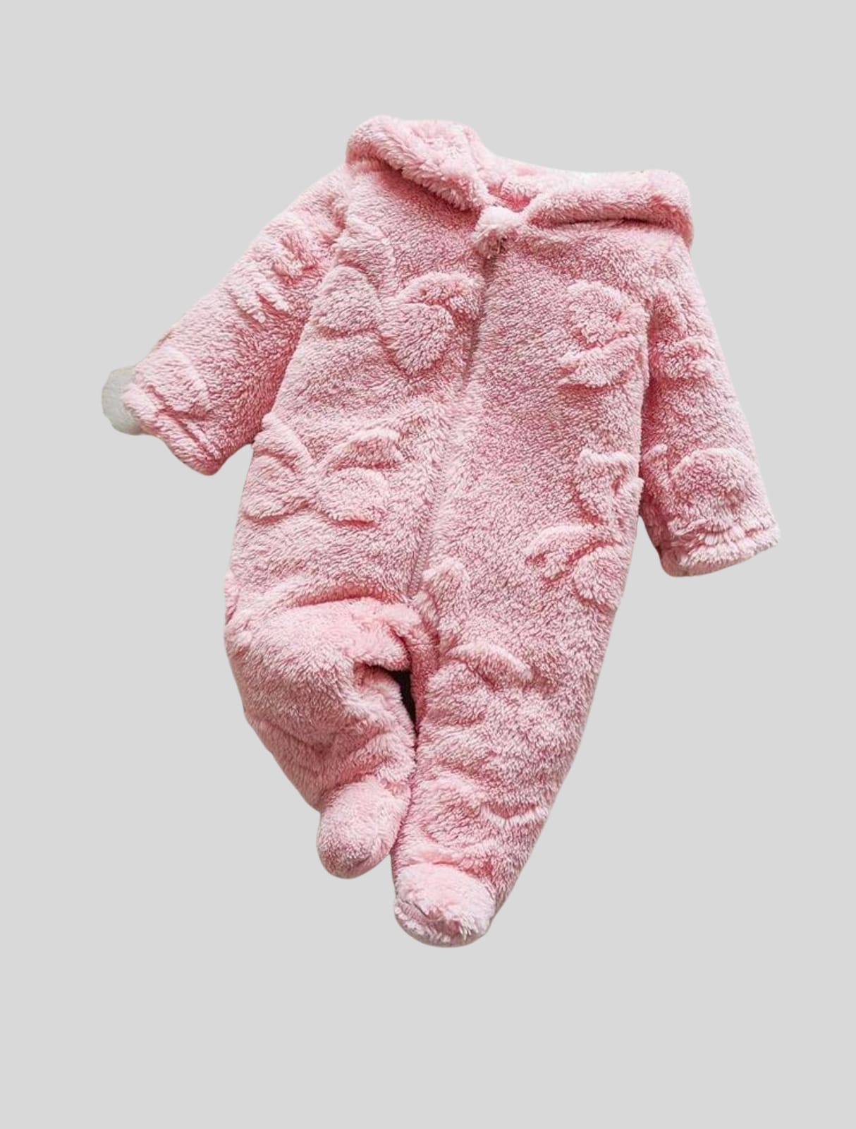 سلوبت بيبي شتوي ناعم جدًا بلون وردي فاتح، مصنوع من خامة فرو طرية ومبطنة بالكامل لتمنح البيبي إحساس بالدفء والراحة طول اليوم